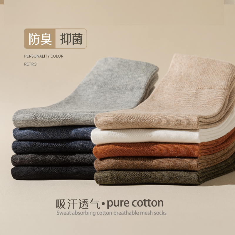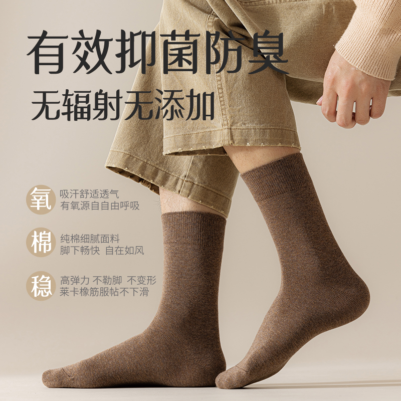中筒袜纯棉抗菌防臭透气吸汗长袜 男士 恒源祥无骨袜子男款 春秋冬季