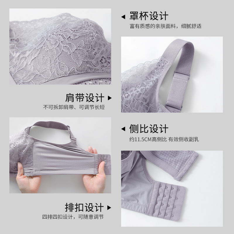 爱戴文胸大胸显小软钢圈植物染大码 宽肩带收副乳防下垂调整型内衣