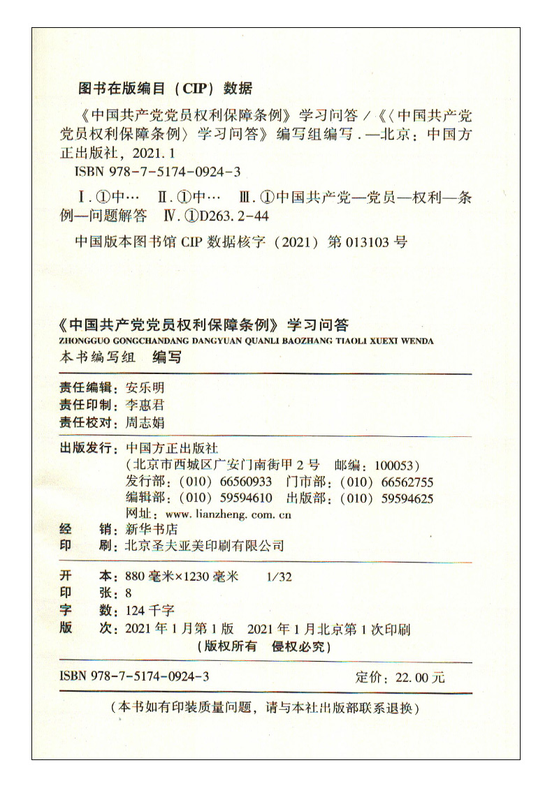 党内党纪党规纪检监察工作干部学习用书实务问答保障法条书籍中国方正出版 正版 学习问答 中国共产党党员权利保障条例 社 2021年