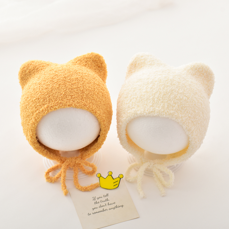 婴儿帽子秋冬季 小月龄外出宝宝帽子婴幼儿保暖毛线帽护耳针织胎帽
