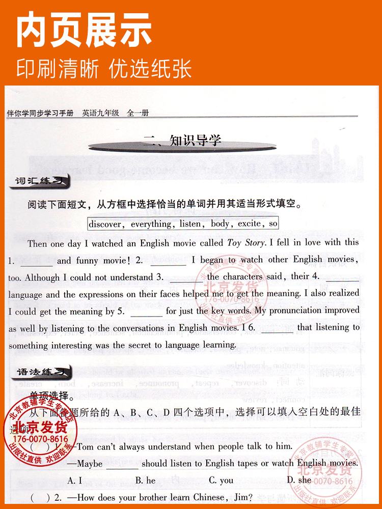九年级全一册9全人教版 初中初三练习册习题 2024年秋季 北京师范大学出版 英语 海淀区教师进修学校编 社 用书伴你学同步学习手册