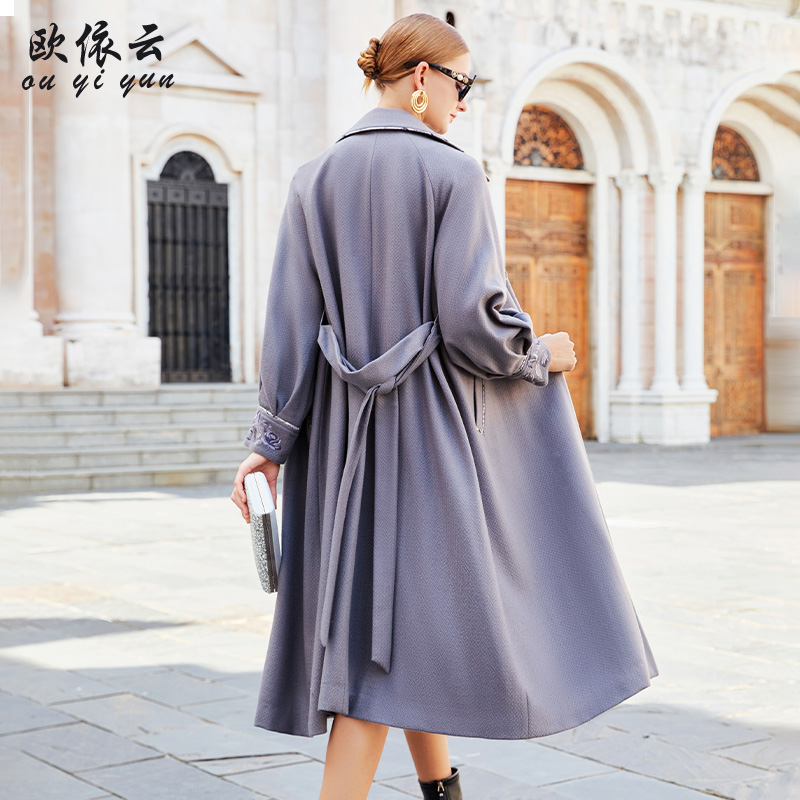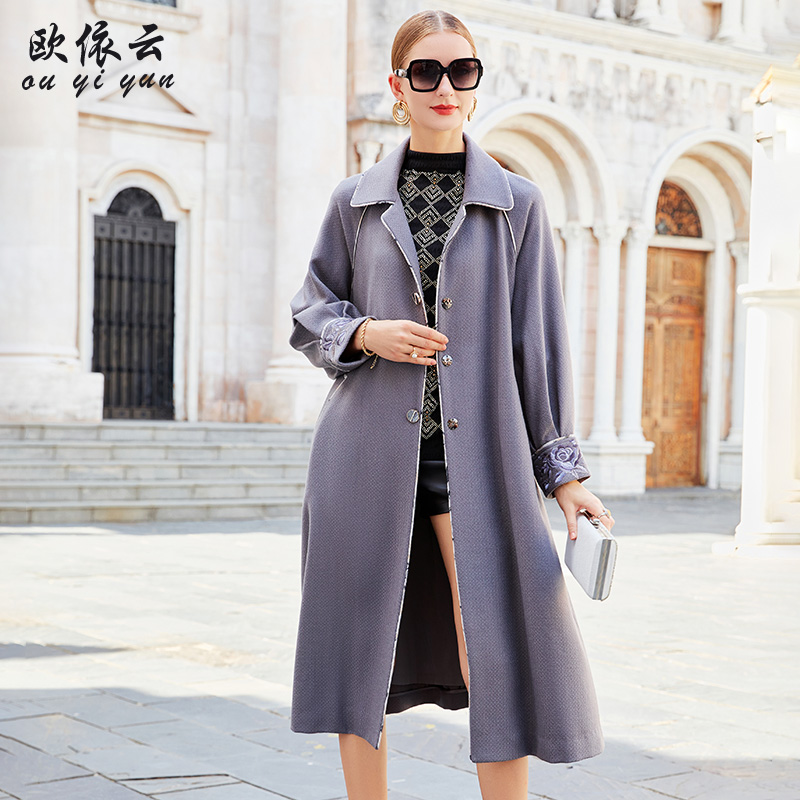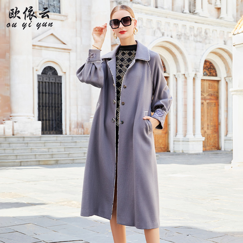 欧依云中老年妈妈秋冬毛呢外套大码 洋气显瘦气质羊毛大衣2024新款