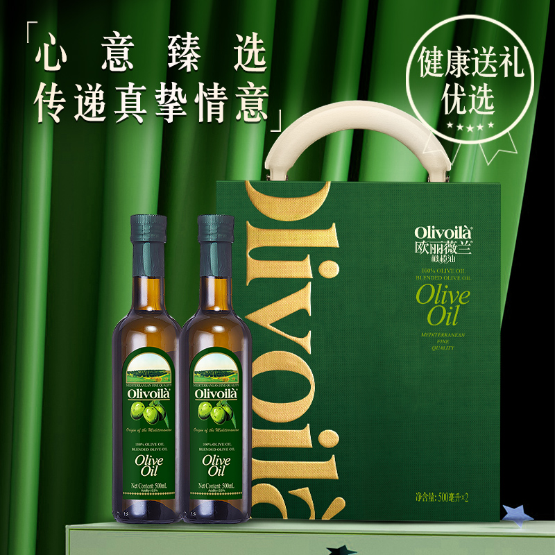 欧丽薇兰橄榄油500ml 2礼盒食用油春节过年送礼家用烹饪炒菜团购