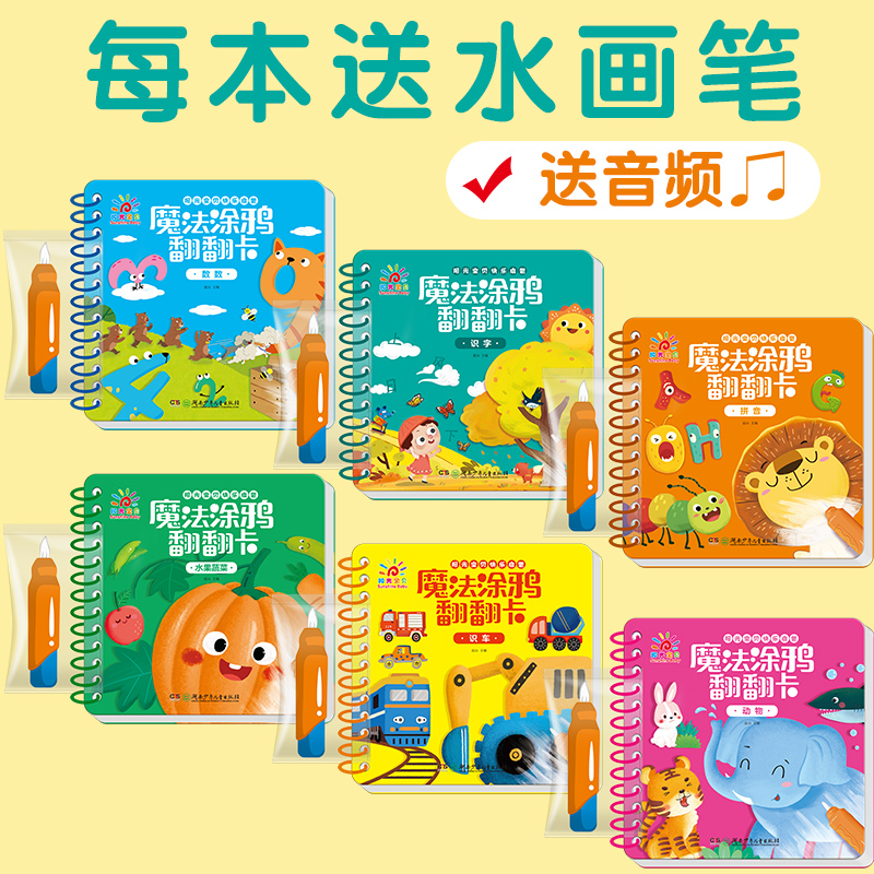阳光宝贝撕不烂涂鸦翻翻卡水画本水果蔬菜图案儿童画画教材涂色书1 6岁宝宝启蒙早教卡片婴幼儿认物彩色卡幼儿填色绘本图画书籍