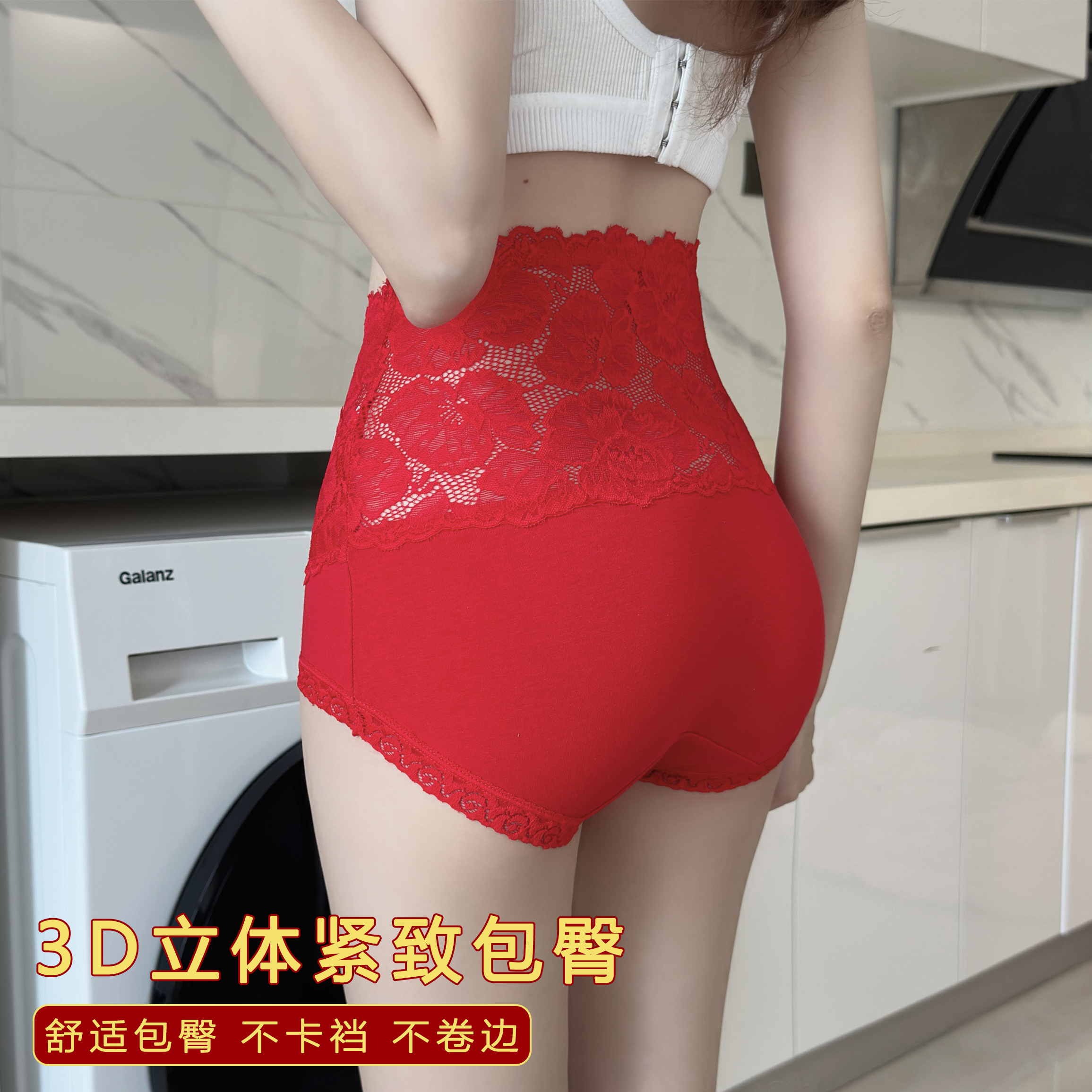 蕾丝女生短裤 本命年内裤 女士纯棉抗菌裆高腰收腹提臀红色2025新款