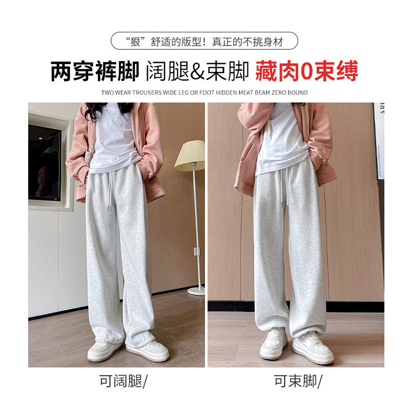 加绒卫裤 运动裤 高腰垂感直筒羊羔绒休闲阔腿棉裤 2024新款 女春秋季