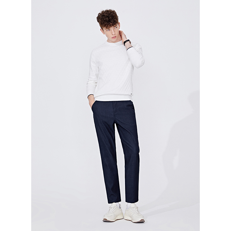 含莫代尔弹力水洗直筒长裤 25新款 男秋季 海澜之家轻商务高端牛仔裤