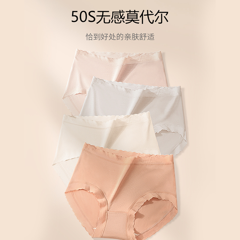 包臀三角裤 薄款 4条50支莫代尔中高腰纯棉裆100棉透气新款 女士内裤