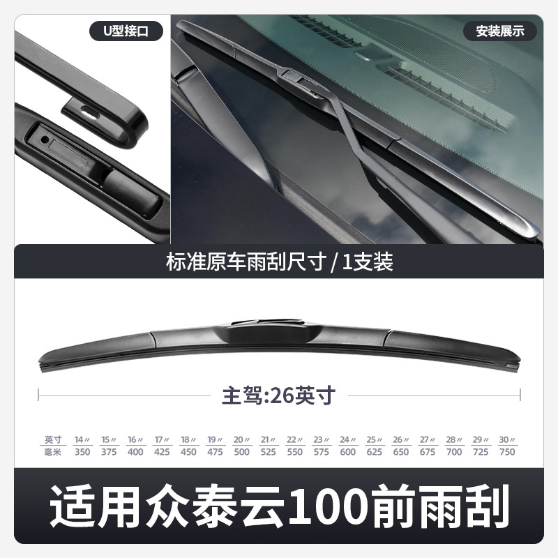 适用众泰云100PLUS雨刮器原装 100S配件无骨胶条片云100前后雨刷条
