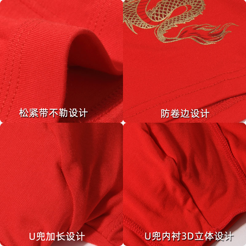 莫代尔大码 四角大红色内裤 属龙男生平角国潮风 男士 龙年本命年内裤