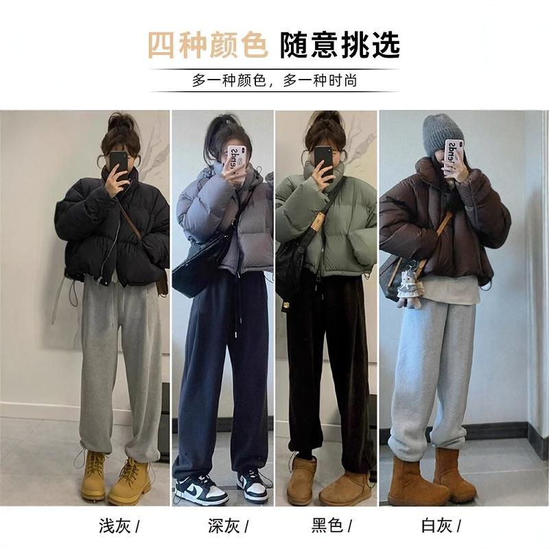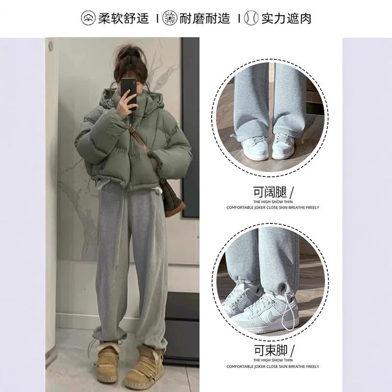 束脚休闲卫裤 阔腿棉裤 子 女秋冬加绒直筒宽松美式 灰色羊羔绒运动裤