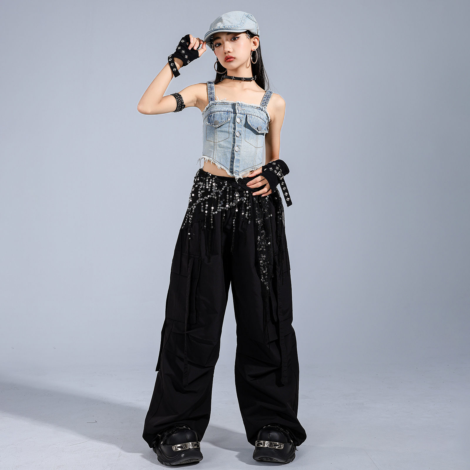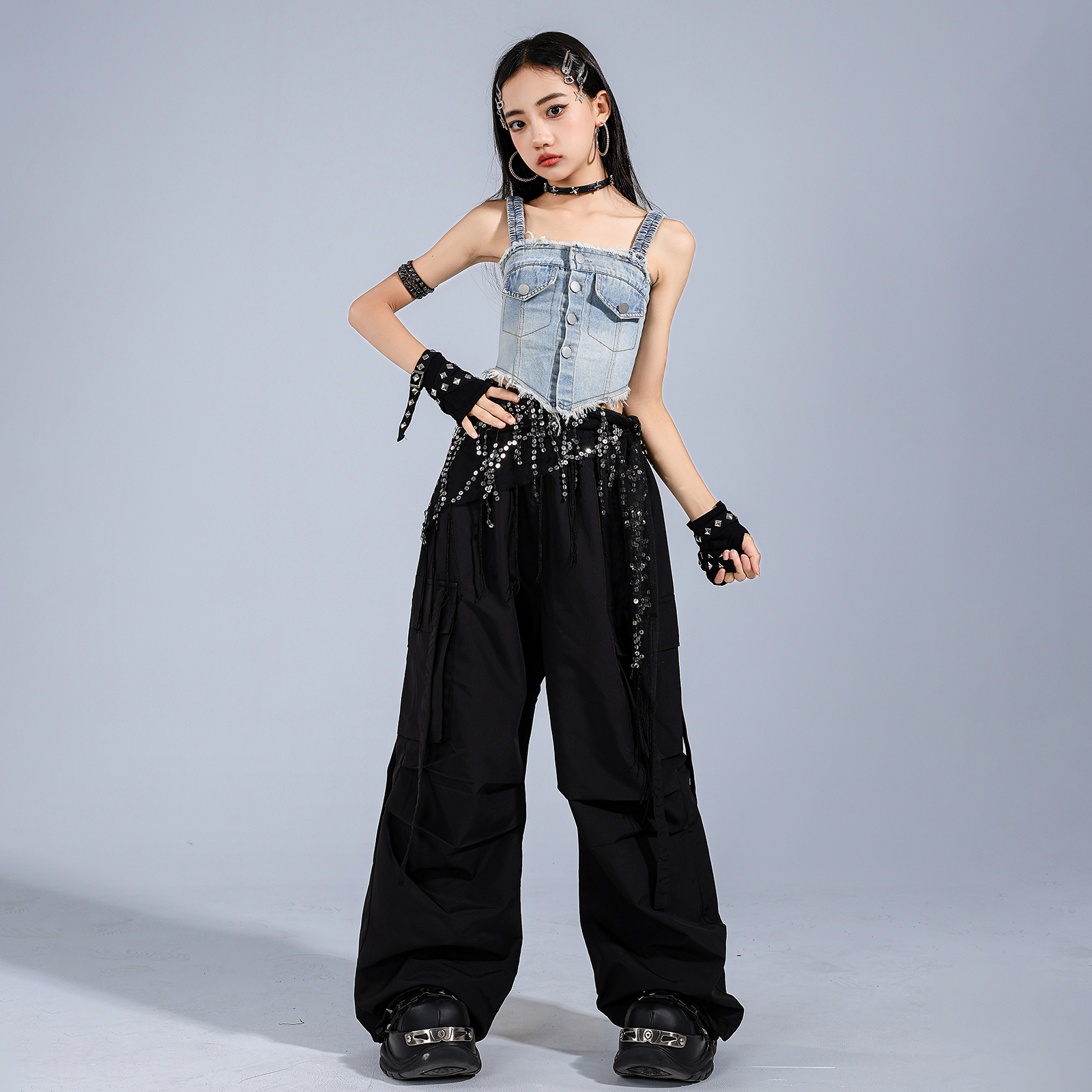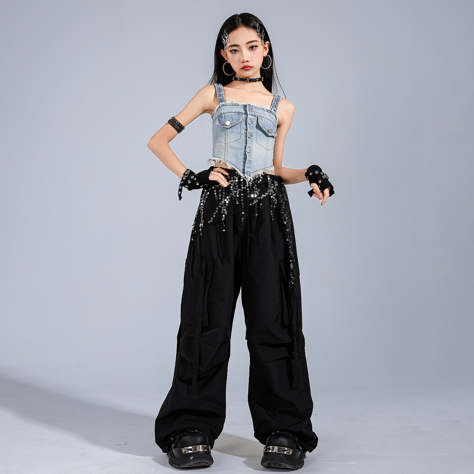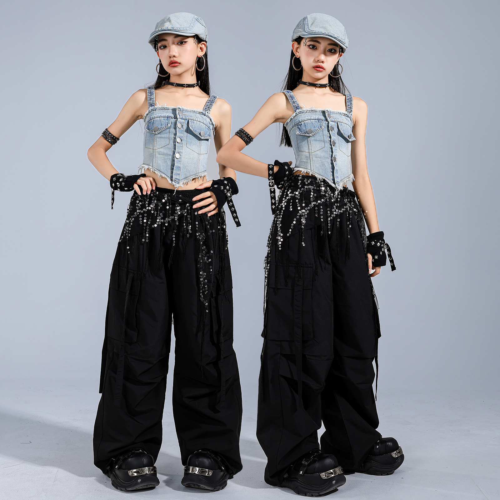 女童爵士舞服装 少儿女团舞蹈演出服 儿童街舞潮服JAZZ表演酷帅套装