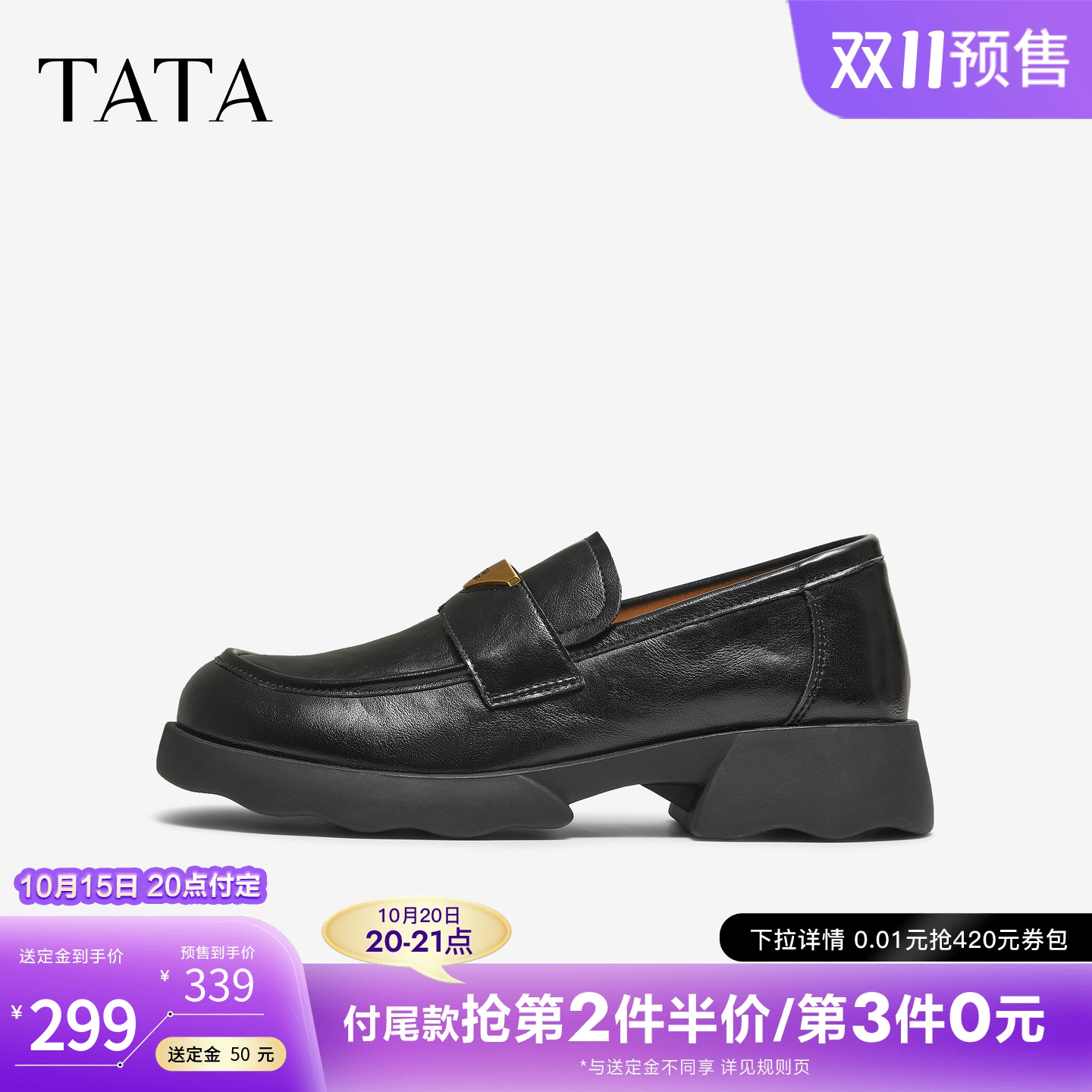 双11预售 鞋 TATA他她单鞋 一脚蹬英伦风小皮鞋 子CWK02CA5 乐福鞋