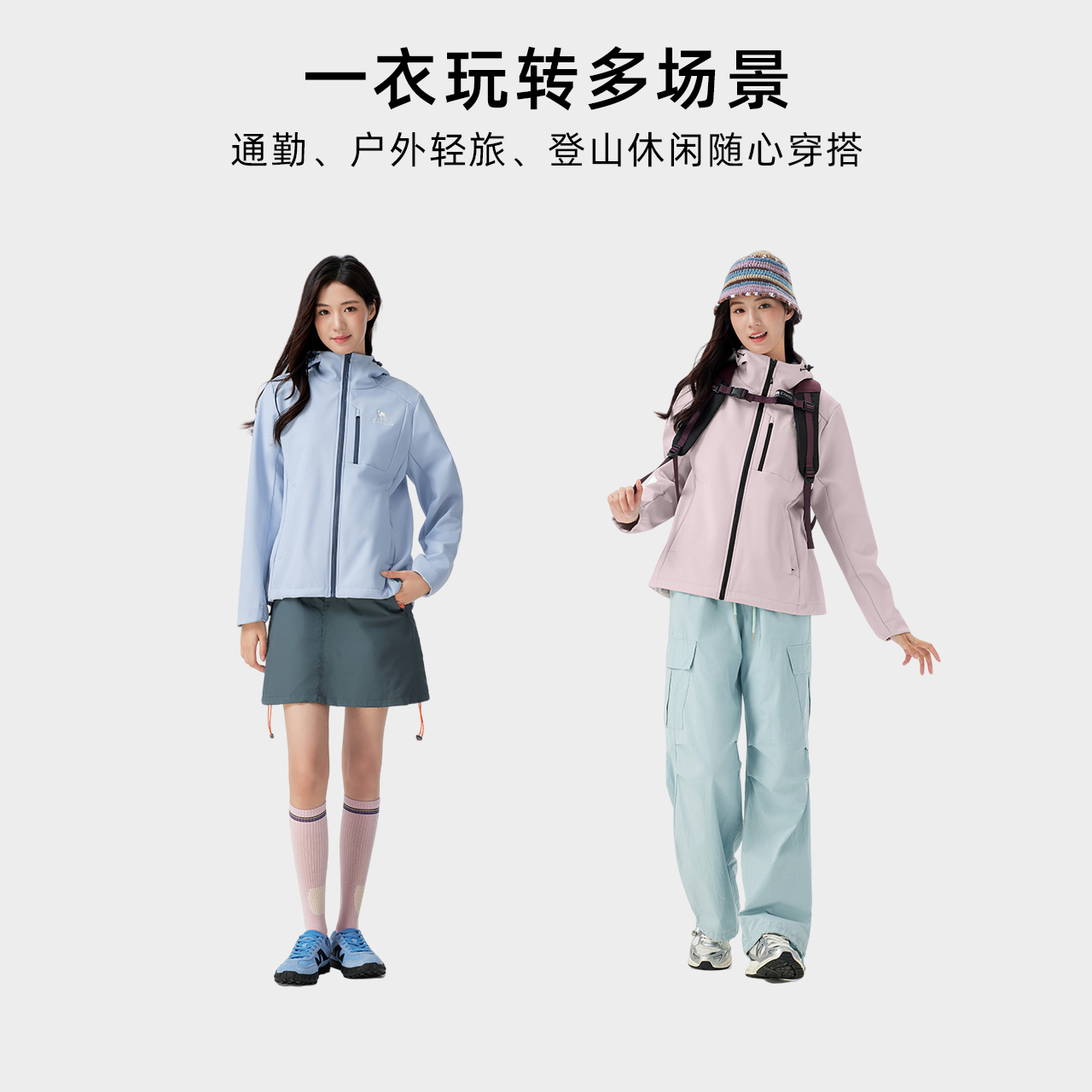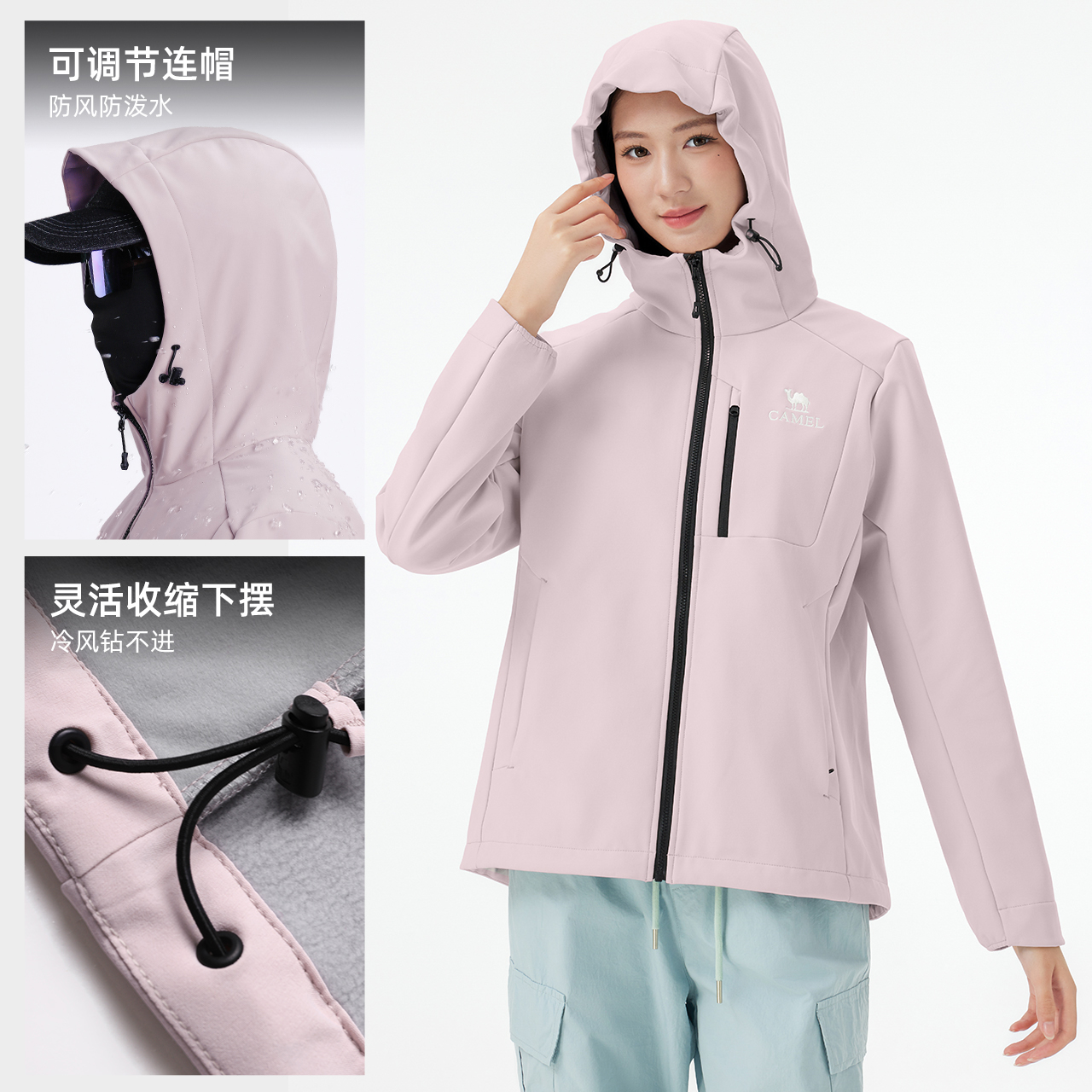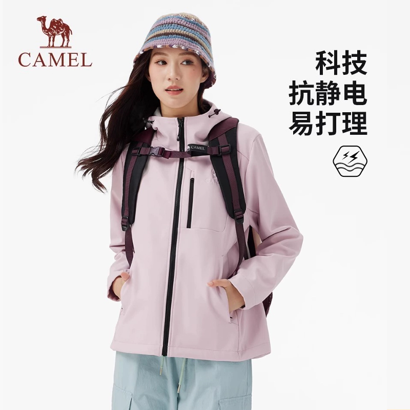 骆驼女装 软壳衣防泼水防风夹克连帽外套 休闲外套加绒2025秋冬新款
