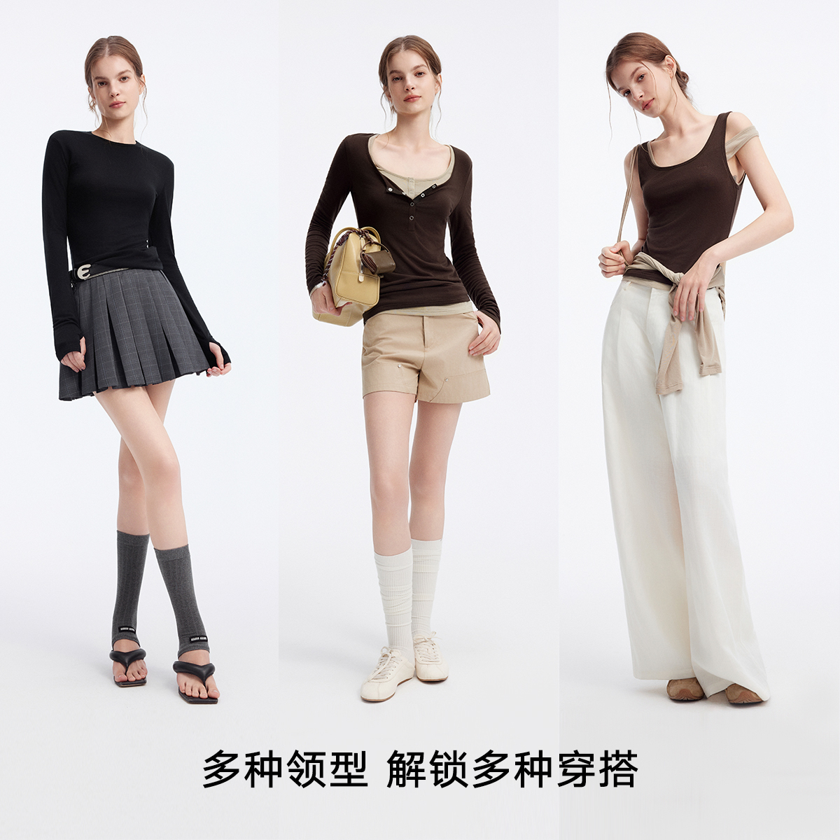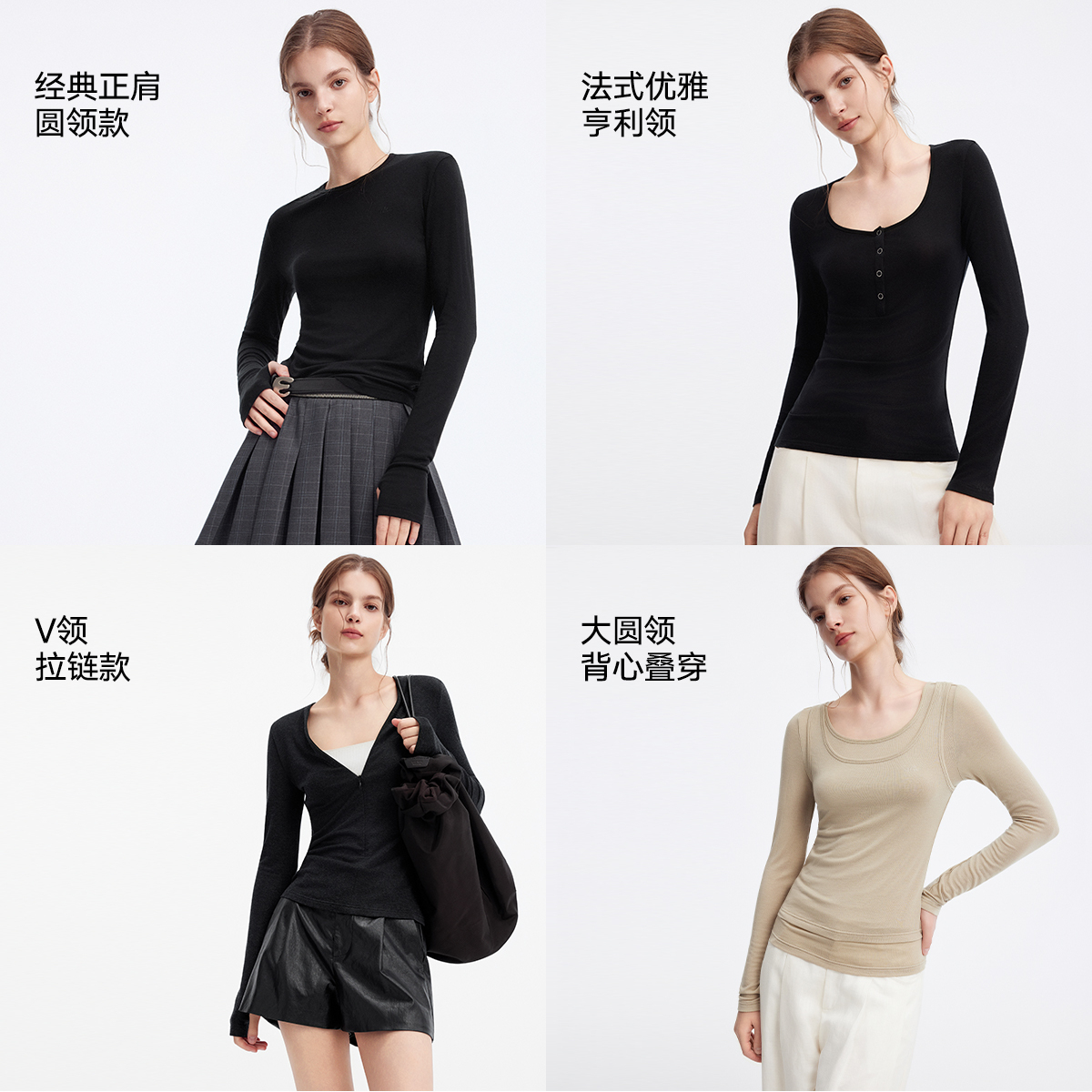 新款 ELLE微塑天丝羊毛肌底衣修身 显瘦舒适百搭打底上衣2025秋季