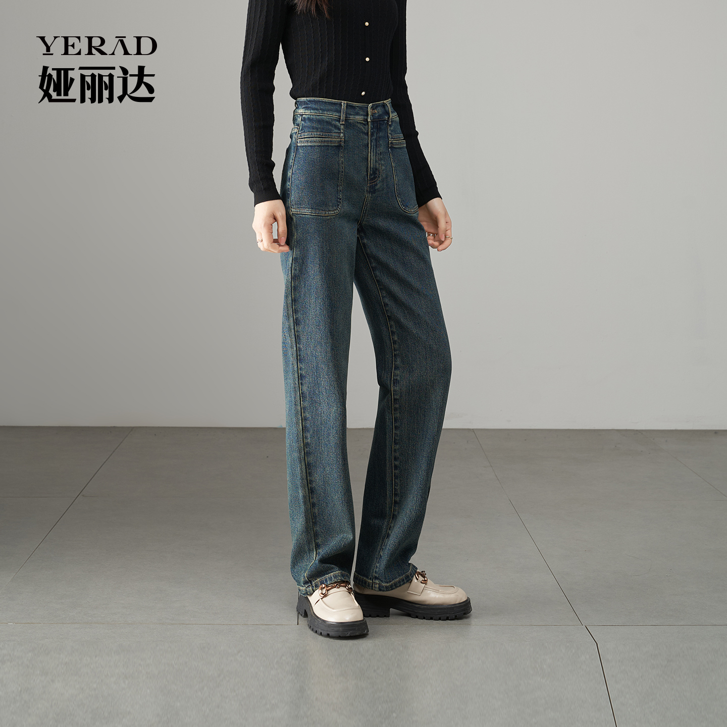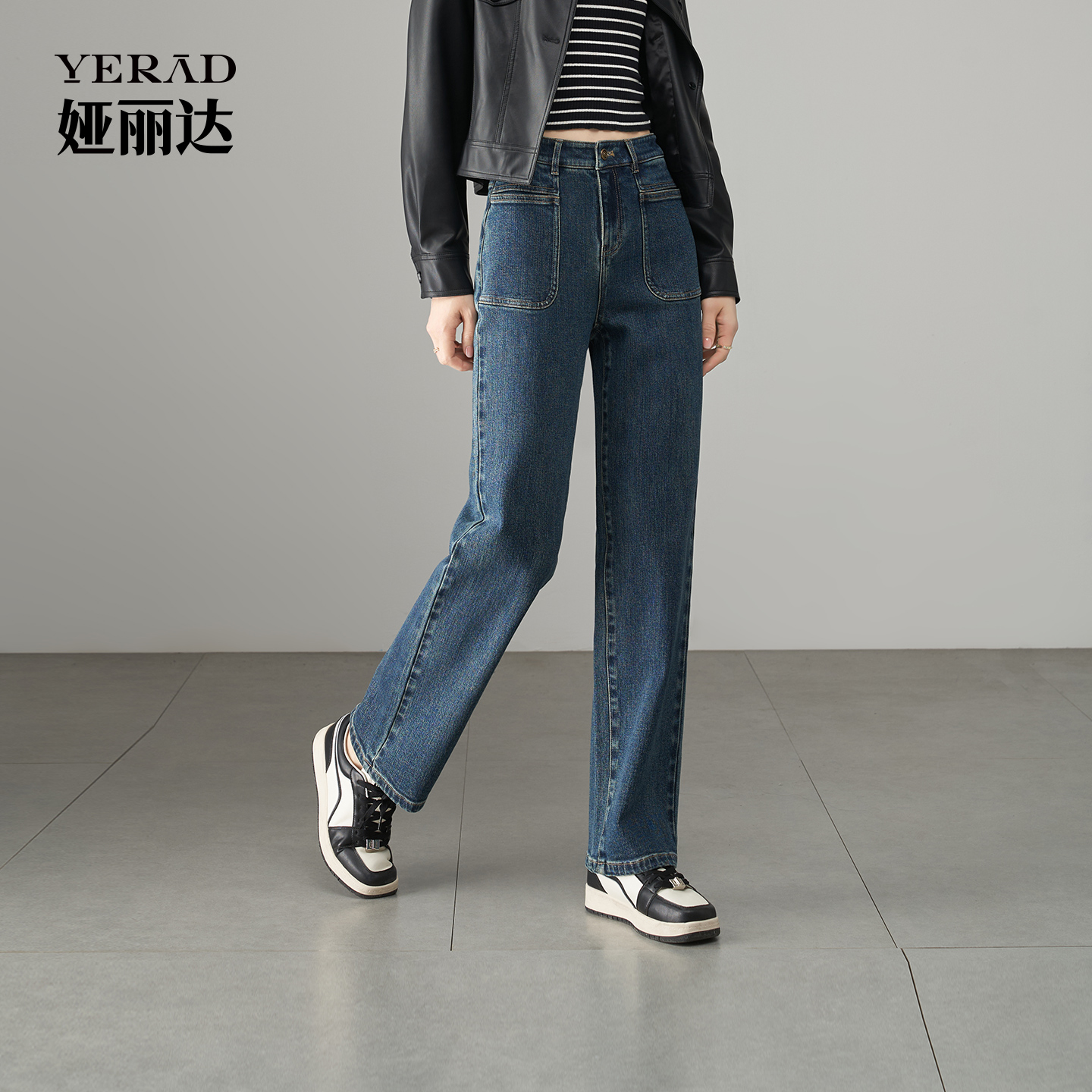 子女 宽松显瘦阔腿直筒牛仔裤 太平鸟复古高腰直筒牛仔裤 2025年秋季