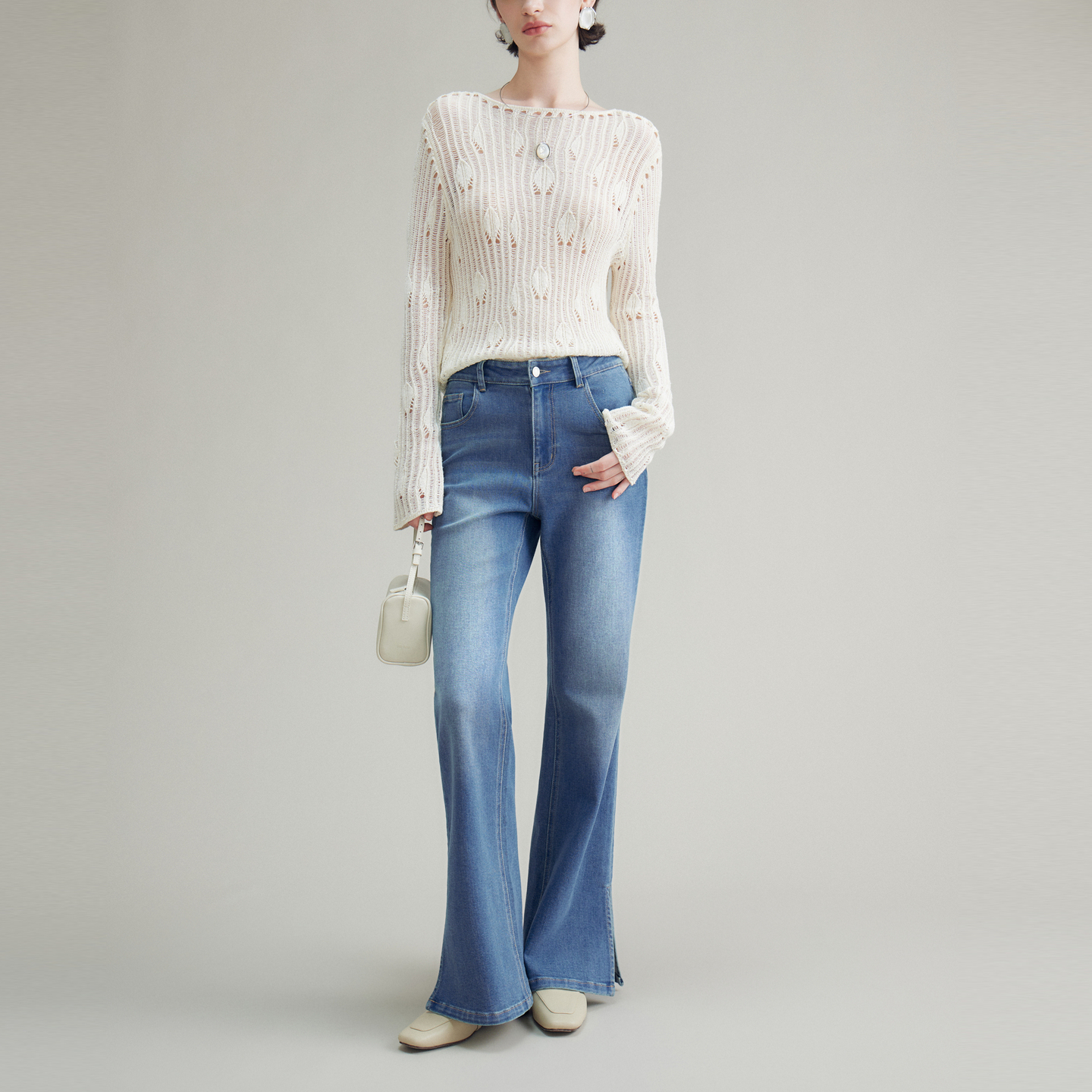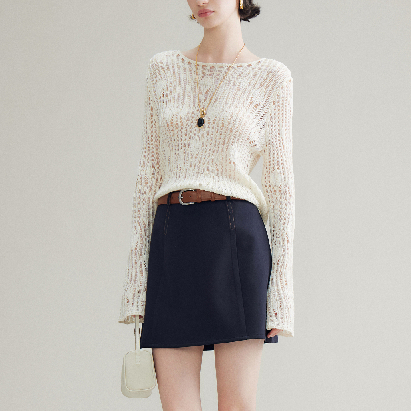 女2025秋宽松长袖 百家好纯色镂空针织衫 慵懒风上衣 House Basic