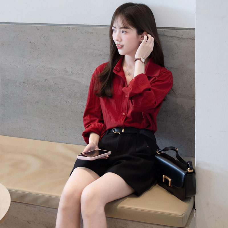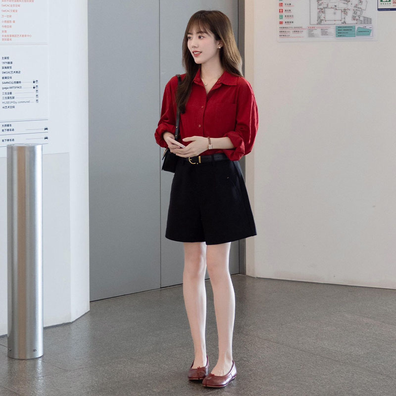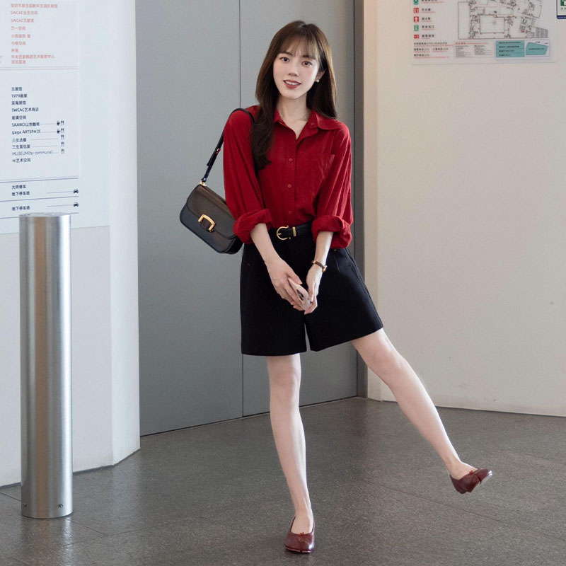 两件套装 夏季 时尚 女黑色休闲短裤 港风复古chic慵懒风宽松防晒衬衫