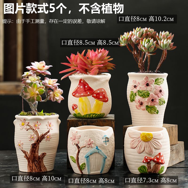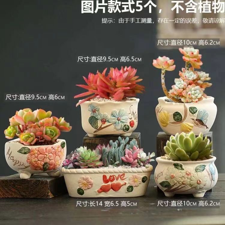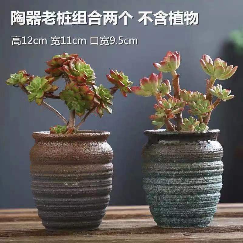 多肉花盆粗陶透气大陶瓷复古植物套装 清仓带托盘桌面 组合创意特价
