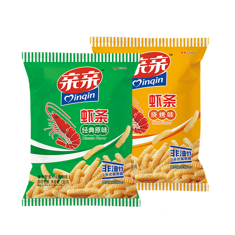 亲亲虾条130g超大包袋装 办公室膨化零食网红小吃休闲食品整箱批发
