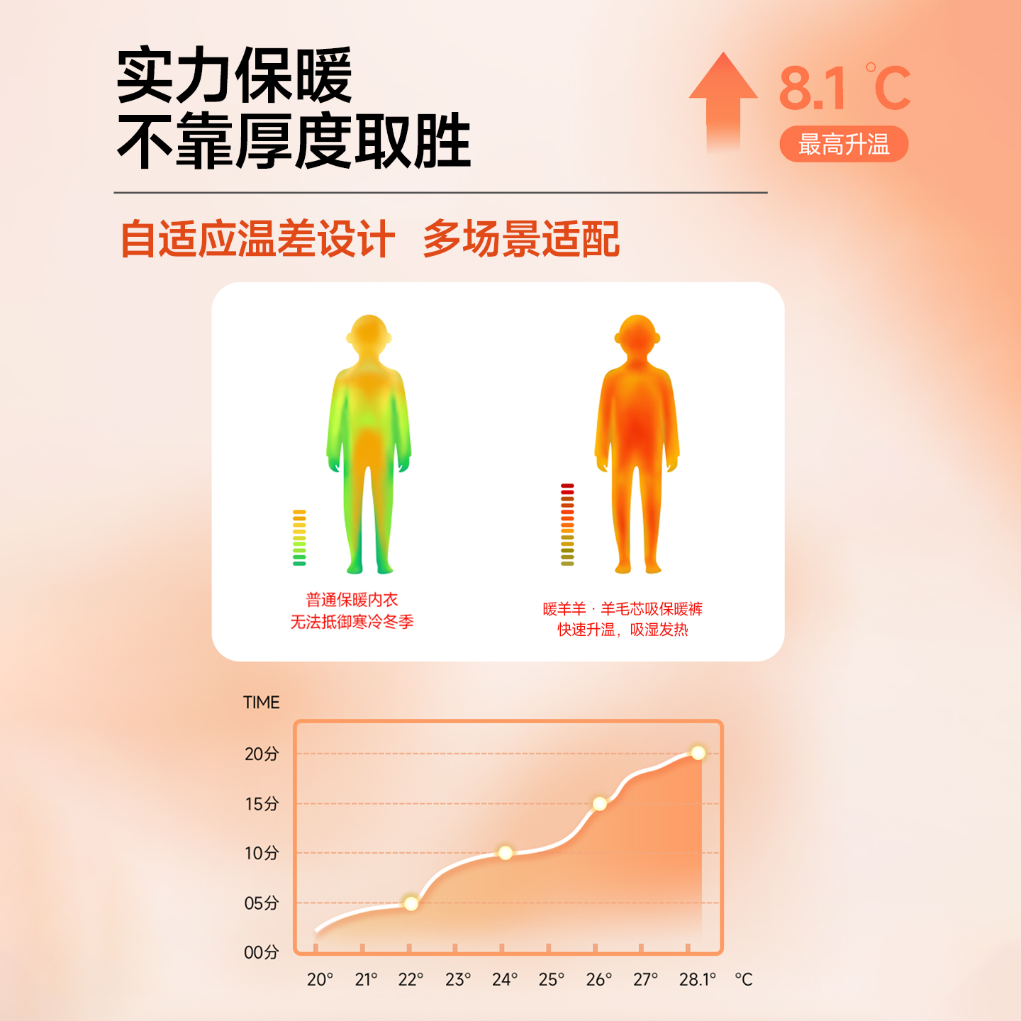 加绒毛线裤 ubras保暖裤 打底秋裤 发热薄款 男女士羽绒化羊毛肌底裤