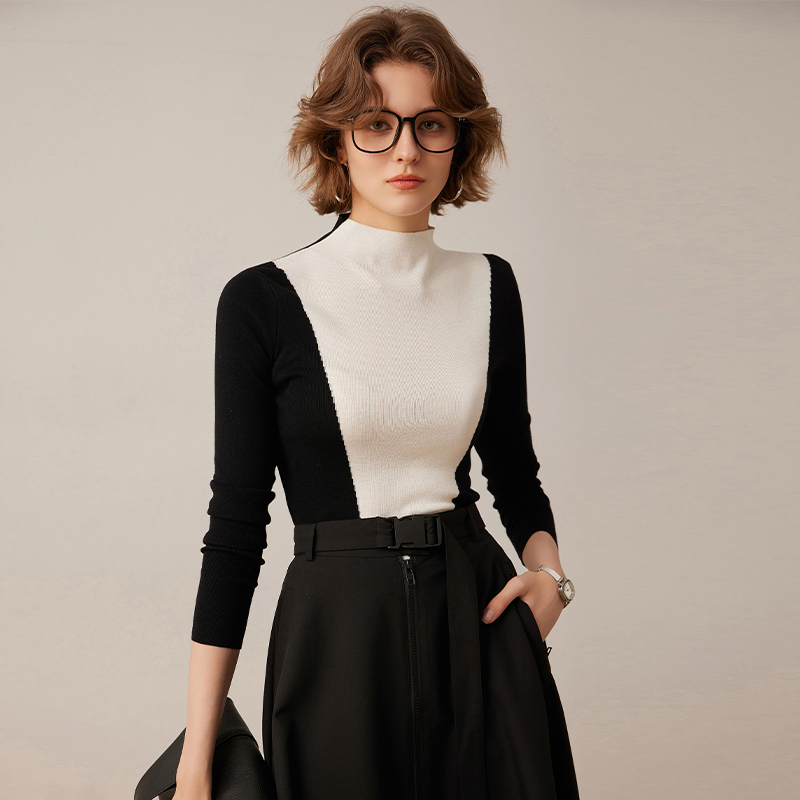 针织衫 黄色上衣毛衣打底衫 内搭2025秋冬季 女装 新款 阔色黑色长袖