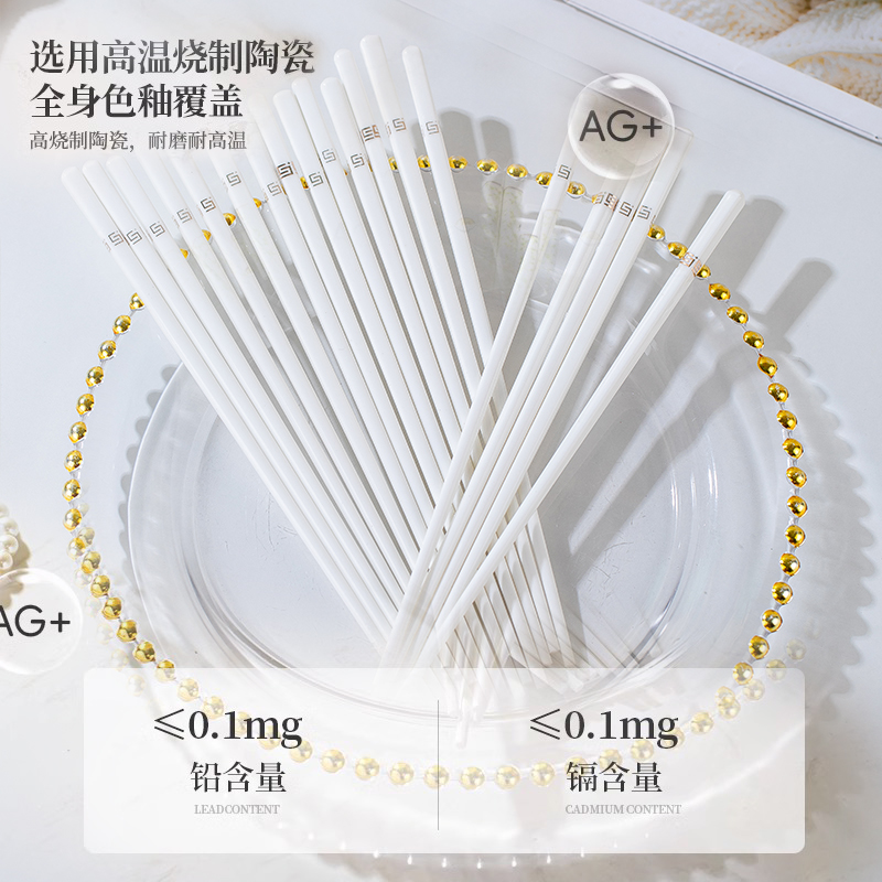 景德镇陶瓷筷子家用高档抗菌防霉轻奢高级感防滑耐高温健康易清洗