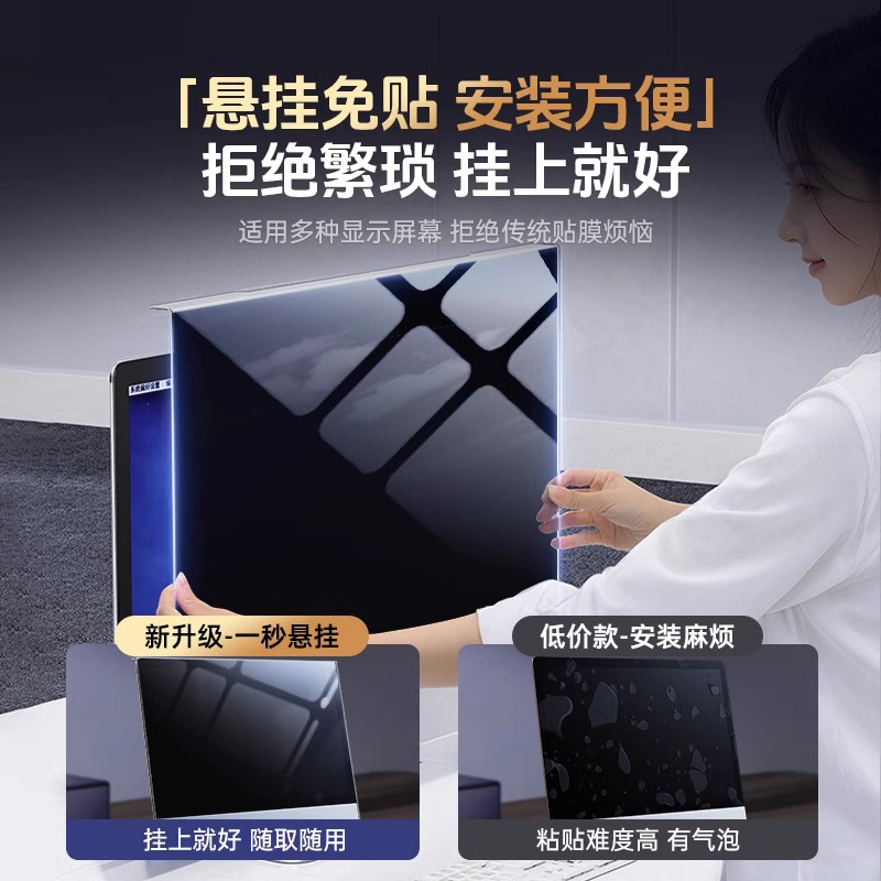 台式 电脑防窥膜19寸显示器屏幕防偷窥膜防蓝光保护膜27护眼防辐射防反光免贴21.5寸23寸24寸32笔记本隐私贴膜