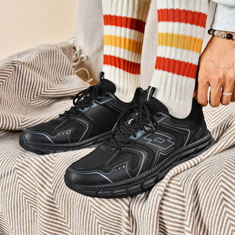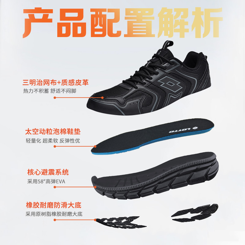 轻便厚底跑步鞋 LOTTO乐途男鞋 新款 2025春秋季 透气网面黑色运动鞋