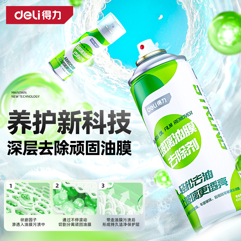 得力玻璃油膜去除剂清洁剂汽车专用前挡风不挂水强力除油清洗剂