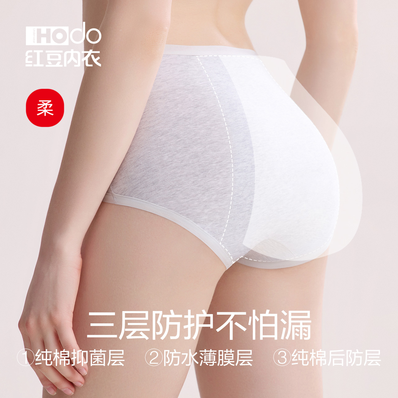 红豆女生理裤 长绒棉纯棉抗菌裆中腰月经期三层防漏高腰暖腹安全裤