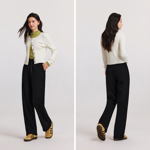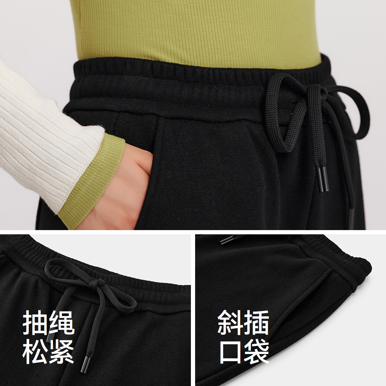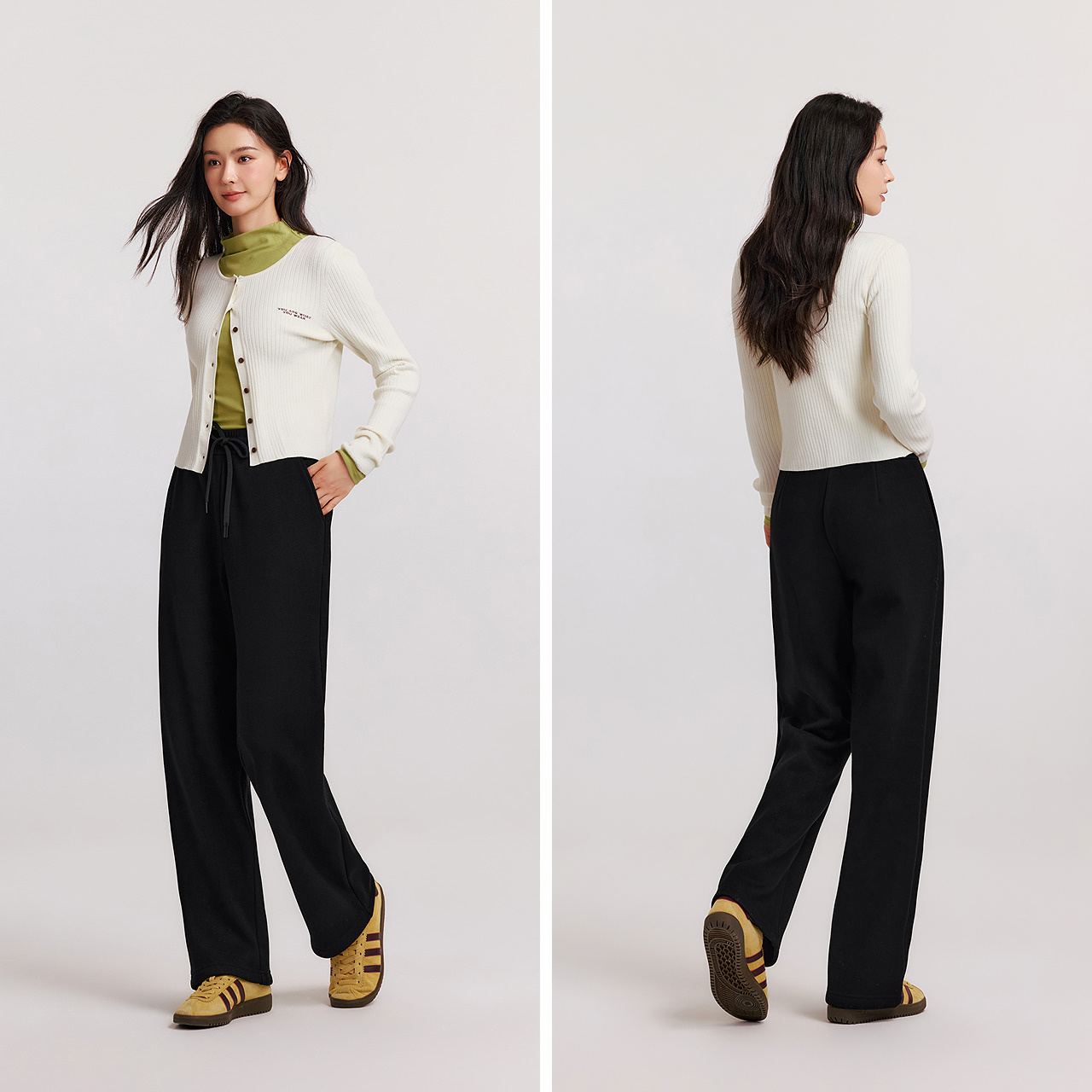 子简约宽松2025冬女士仿呢宽松阔腿裤 黑色裤 女加绒长裤 森马休闲裤