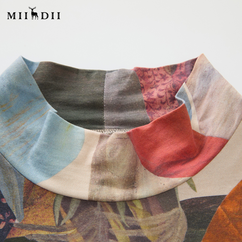 上衣244MT1553 复古风原创花色高弹修身 谜底高领T恤长袖 女冬款