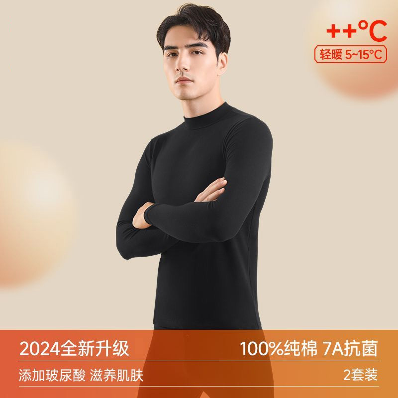 纯棉秋冬季 套装 新款 抗菌高领秋衣秋裤 男生 棉毛衫 舒适保暖内衣男士