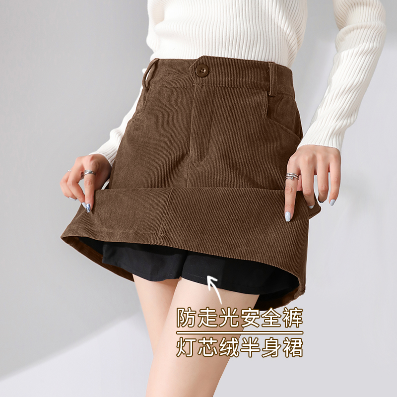 KHV真维斯灯芯绒半身裙女秋冬短裙小个子2025新款 高腰A字包臀裙子