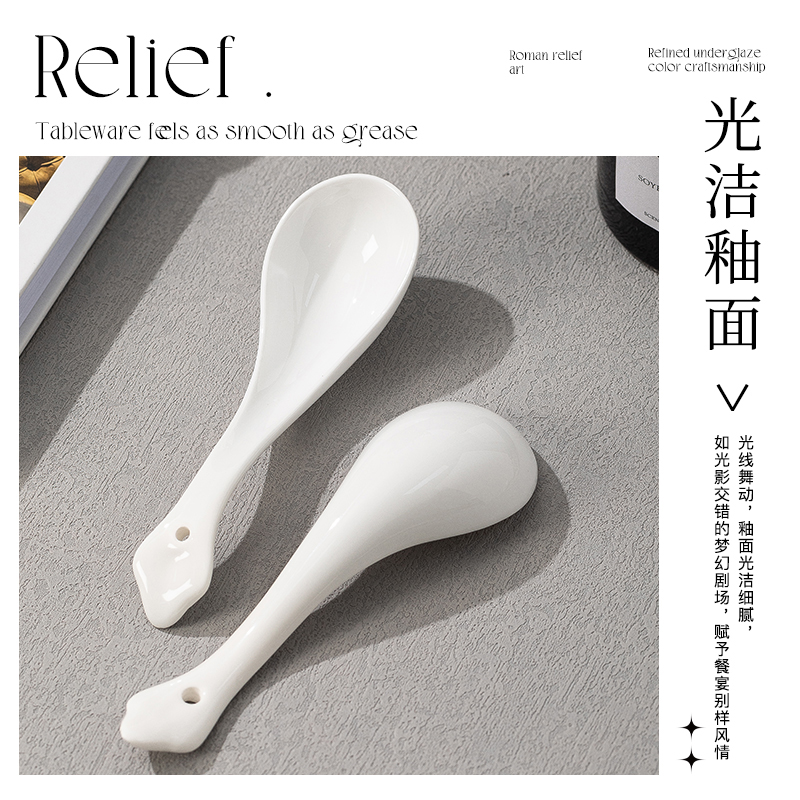 勺子陶瓷家用汤勺高档精致一人一勺调羹汤匙喝汤吃饭专用中式 饭勺