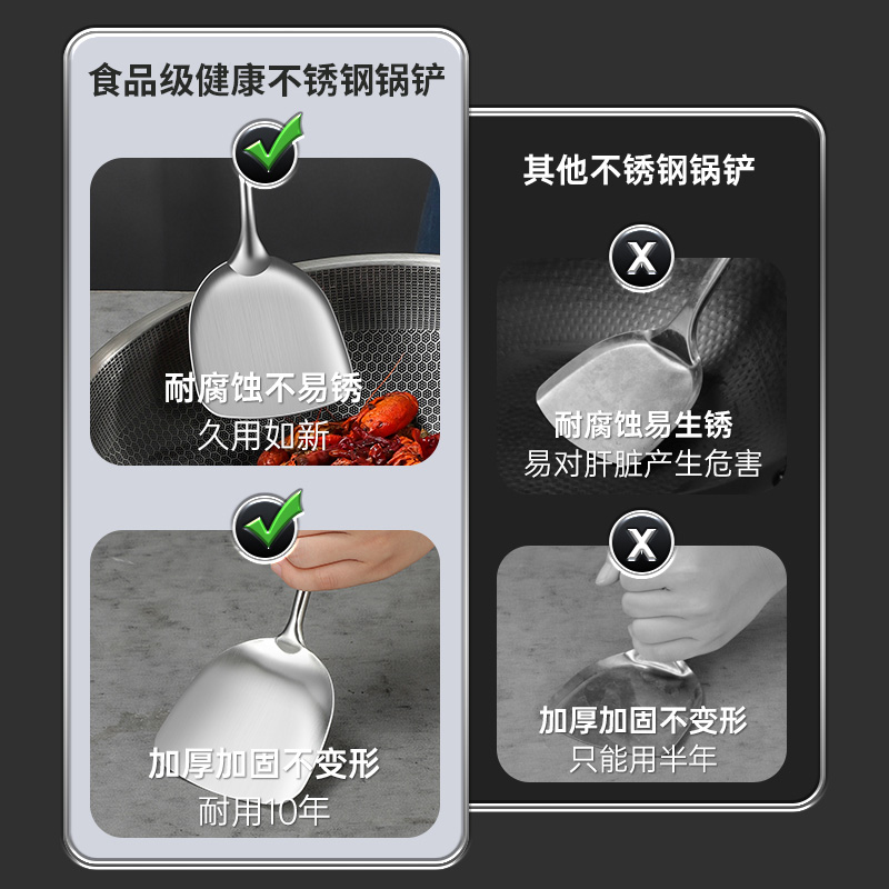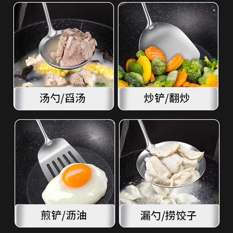 锅铲不锈钢家用炒菜煎铲漏勺汤勺厨具套装 加厚厨房铁铲子炒勺长柄