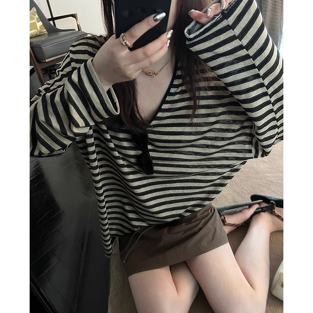 保暖低领打底衫 T恤v领秋冬修身 半开领白色上衣 女长袖 蕉下亨利衫