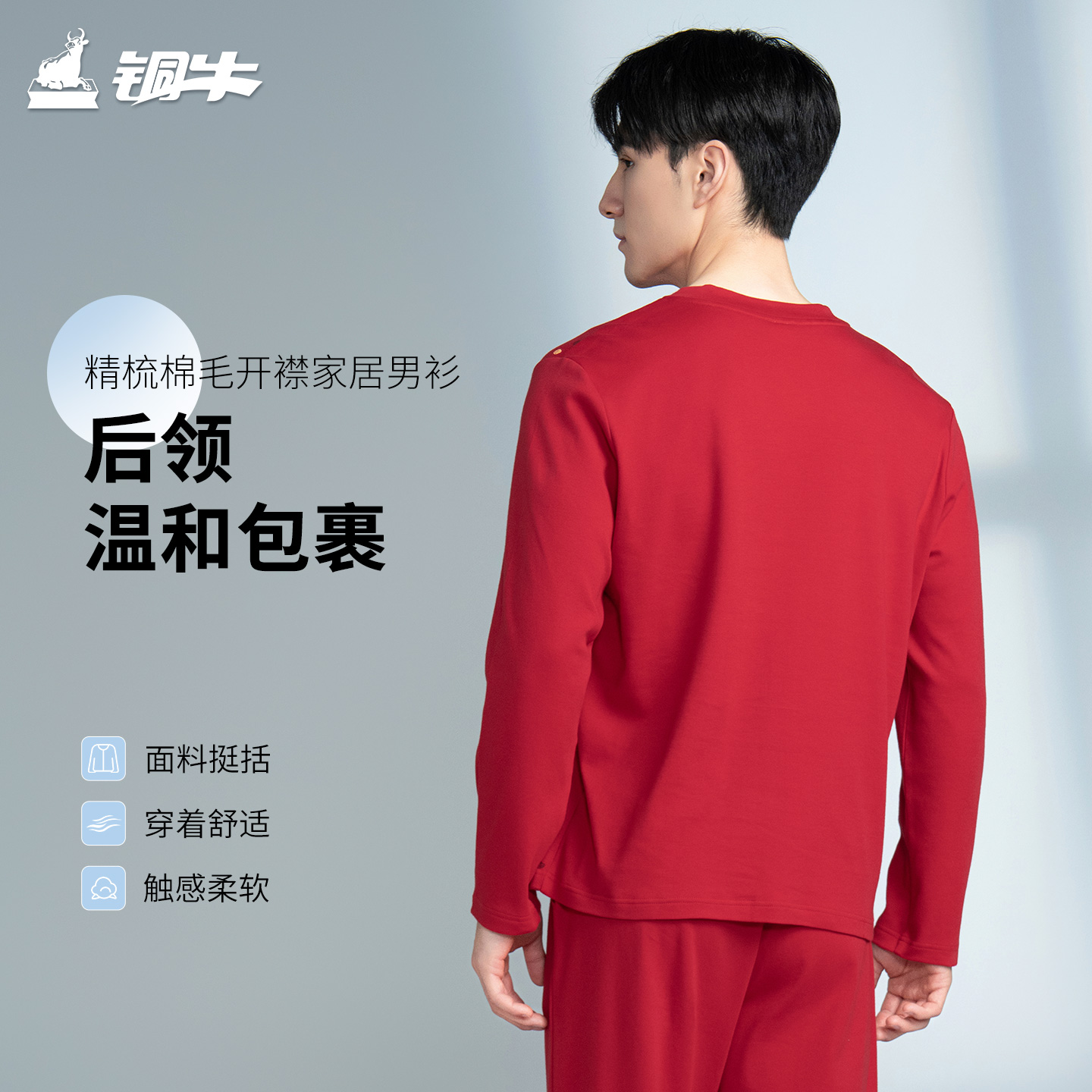 铜牛精梳棉毛开襟家居男衫 睡衣家居服男上衣中老年NS099 秋冬新款