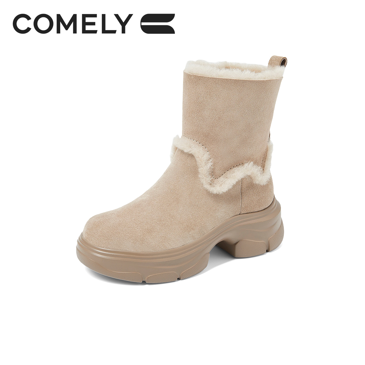 靴 厚底增高短靴加绒保暖棉鞋 康莉皮毛一体雪地靴女靴抗寒冬季 新款