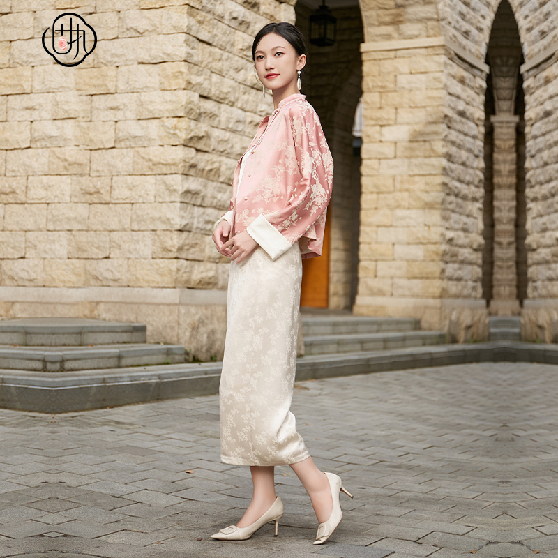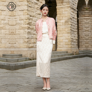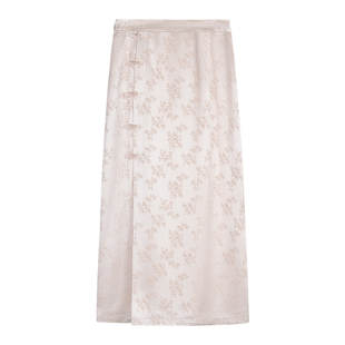优雅气质盘扣提花开衩中长款 新中式 直筒半身裙 新款 固执秋季