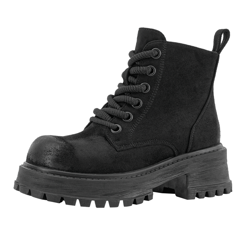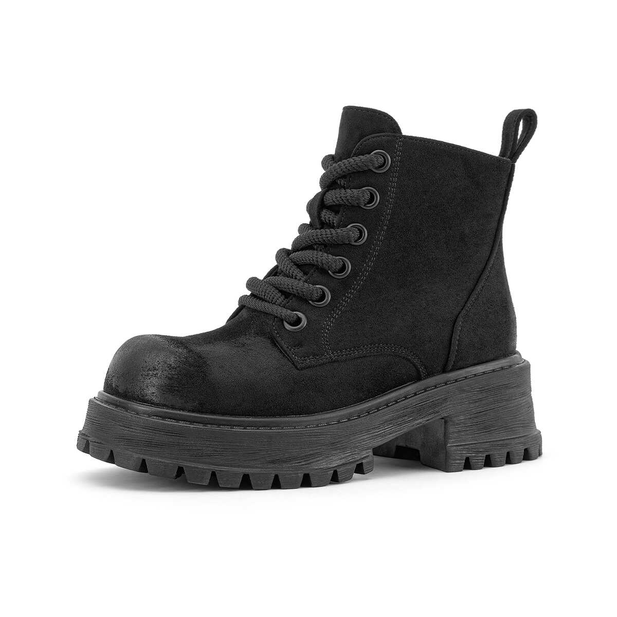 黑色增高靴子女时尚 新款 休闲皮面短靴 2025秋季 环球厚底马丁靴女款