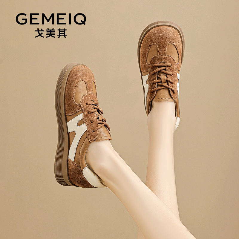 女款 子透气休闲板鞋 厚底舒适新款 轻便鞋 秋季 戈美其真皮复古德训鞋