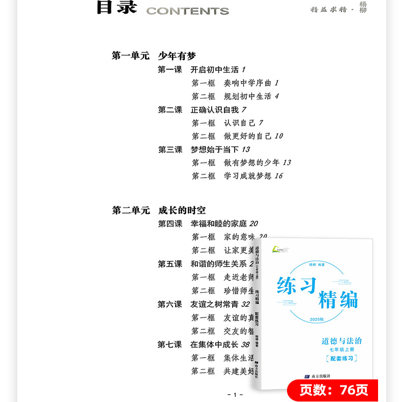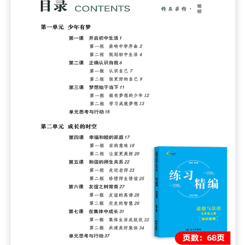 杨柳练习精编七上道法2026杨柳练习精编七年级上道德与法治 七年级上册道法杨柳编著七上道法初中同步练习册测试卷训练题课后复习