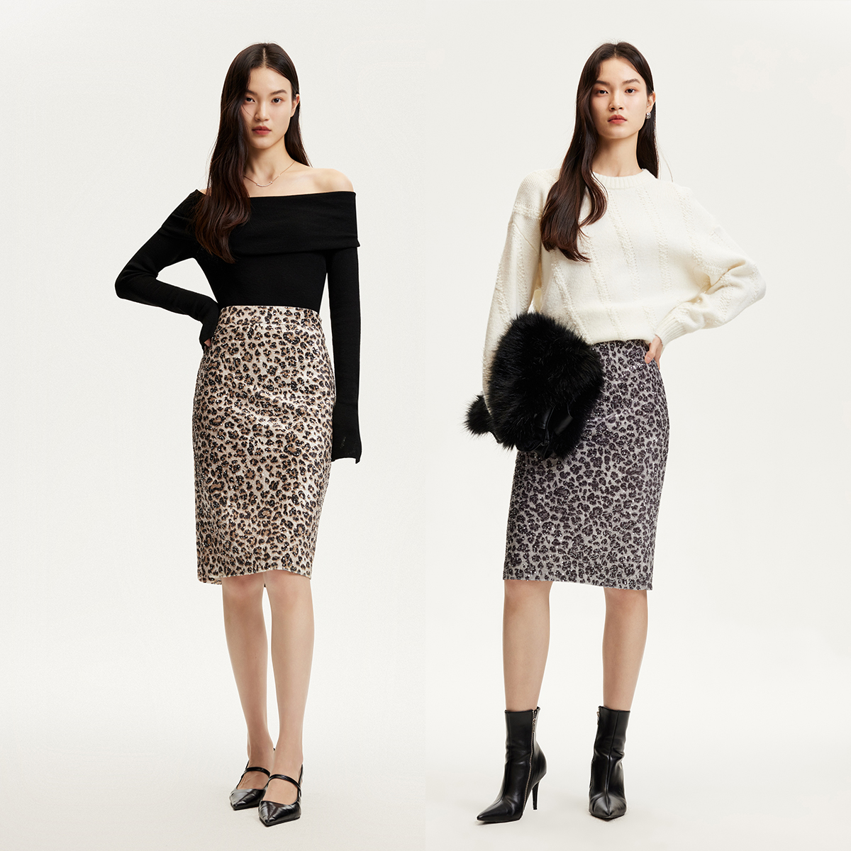 MOVEUP幻走2025冬季 .FUN系列丈根腰头加厚印花压褶复古半身裙 新款