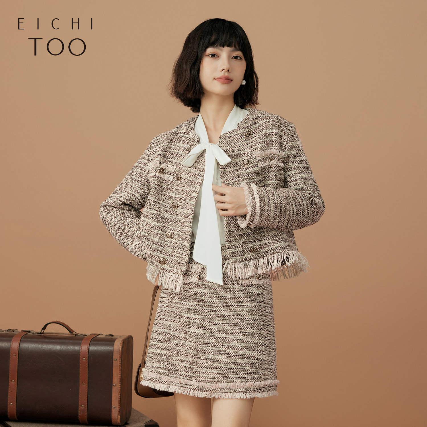 爱居兔秋季 流苏设计感小香风外套 优雅时尚