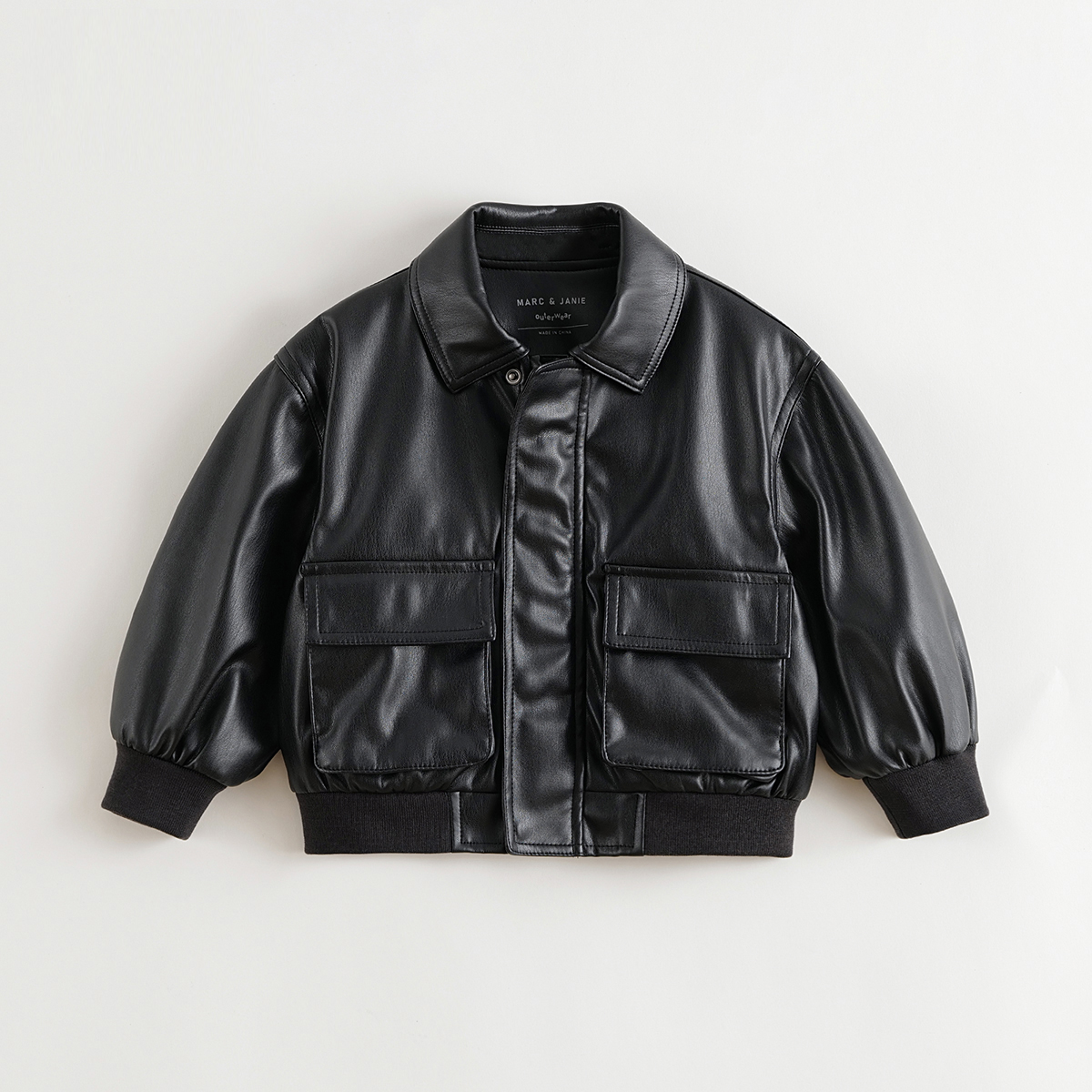 241016 新款 马克珍妮男女童时尚 潮流大口袋皮衣夹克儿童外套秋装