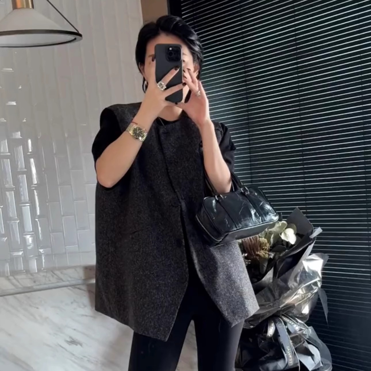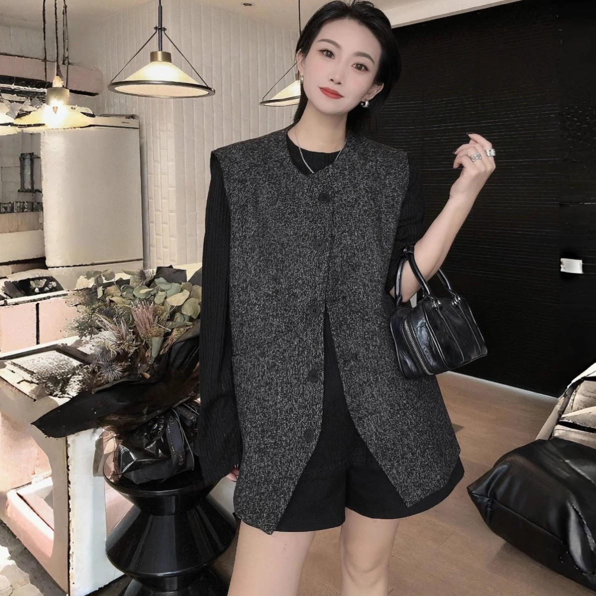 韩系刺绣高级感小个子背心坎肩外套 2025新款 麂皮绒马甲女短款 秋季