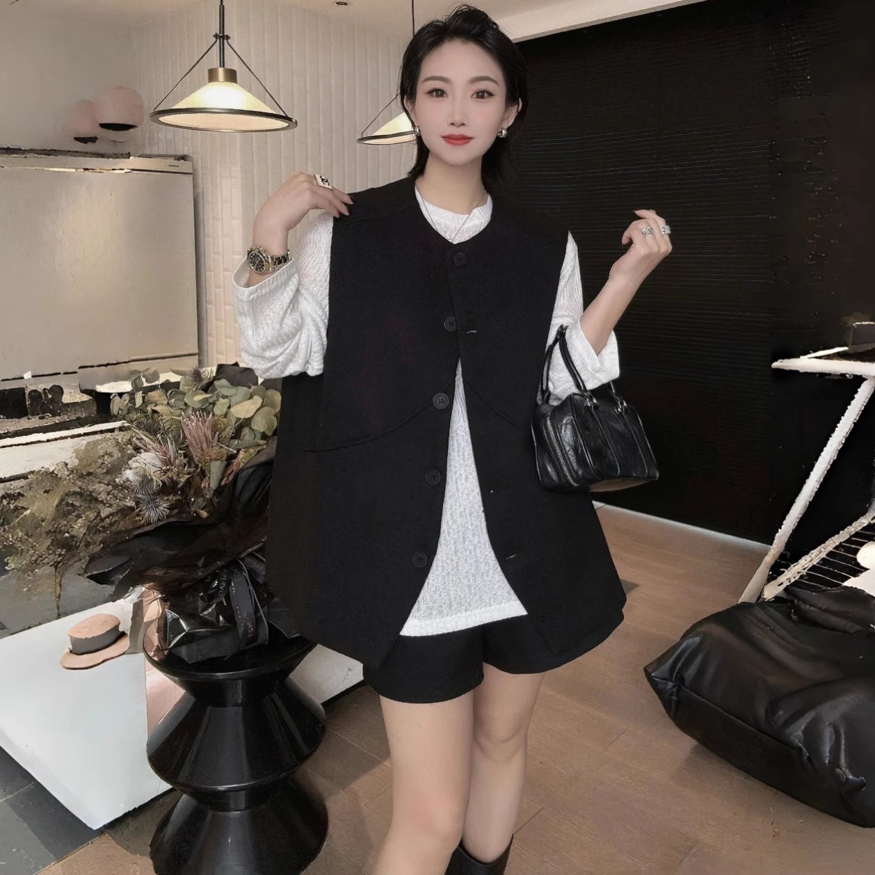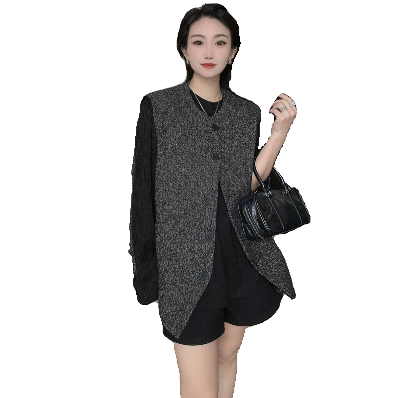 镂空花边纽扣针织衫 秋天叠穿马甲 吊带背心女内搭上衣外搭独特罩衫