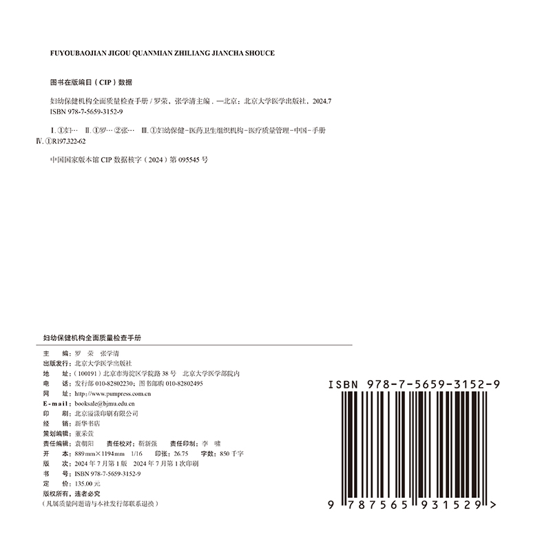 全新 主编北京大学医学出版 妇幼保健机构全面质量检查手册平装 张学清 社9787565931529 罗荣 正版